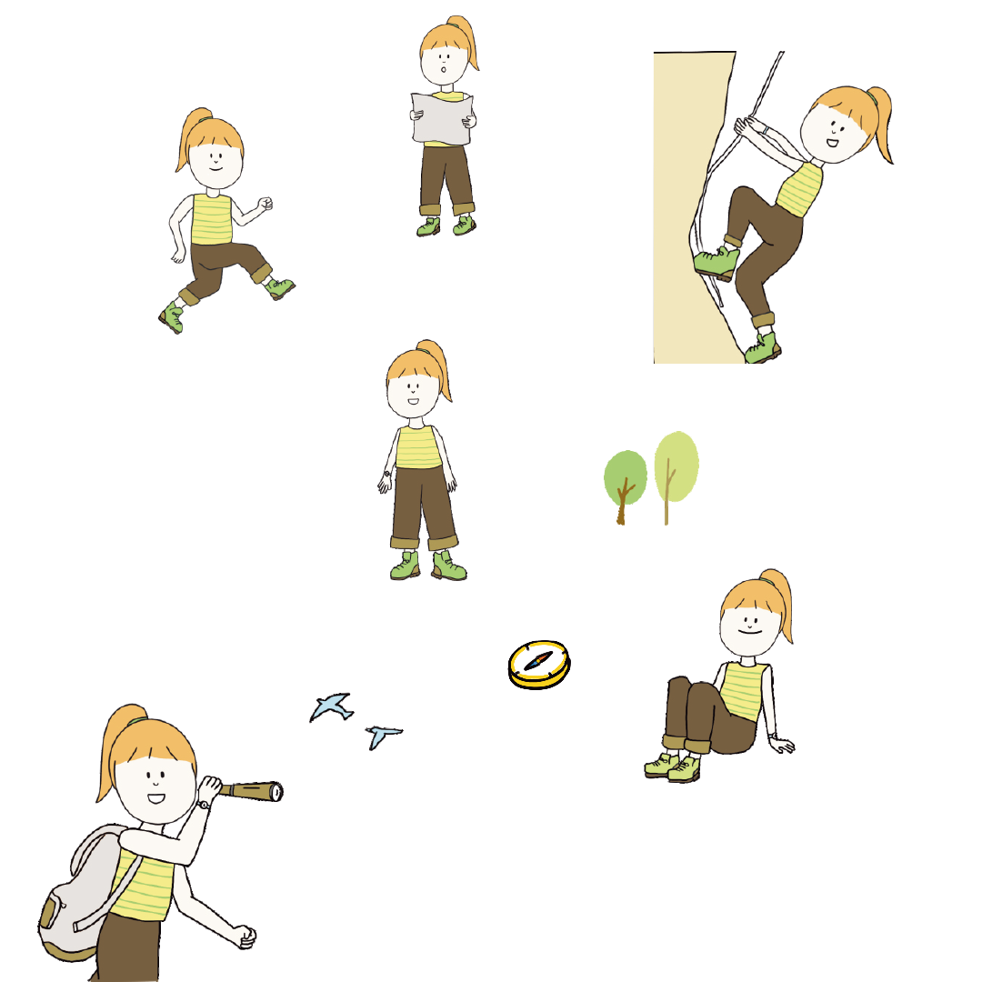 오름이는 시계와 나침반, 망원경과 지도를 준비해 천왕산에 도착했어요.