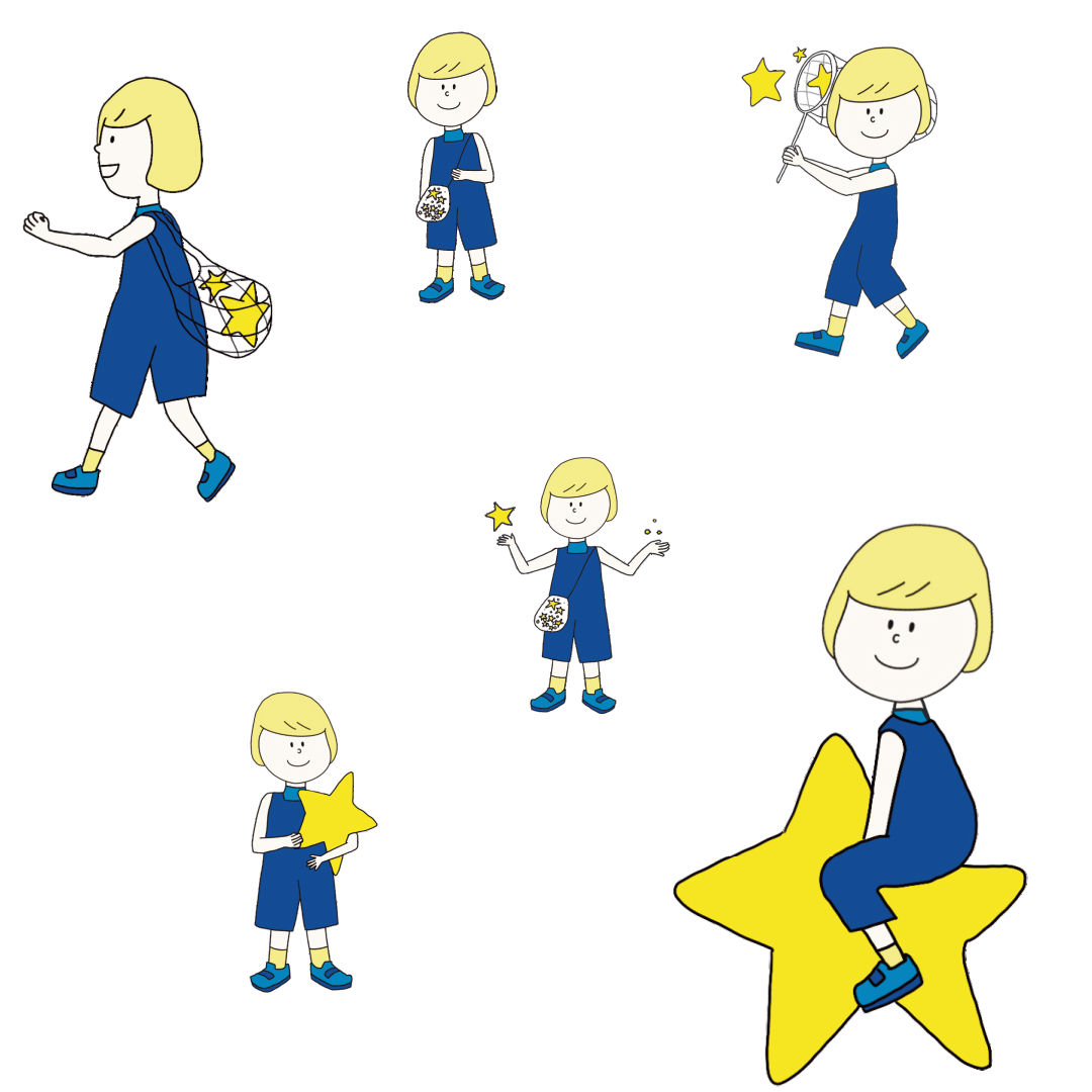 별이는 오름이, 구름이, 비움이, 들음이, 나눔이, 채움이 친구들과